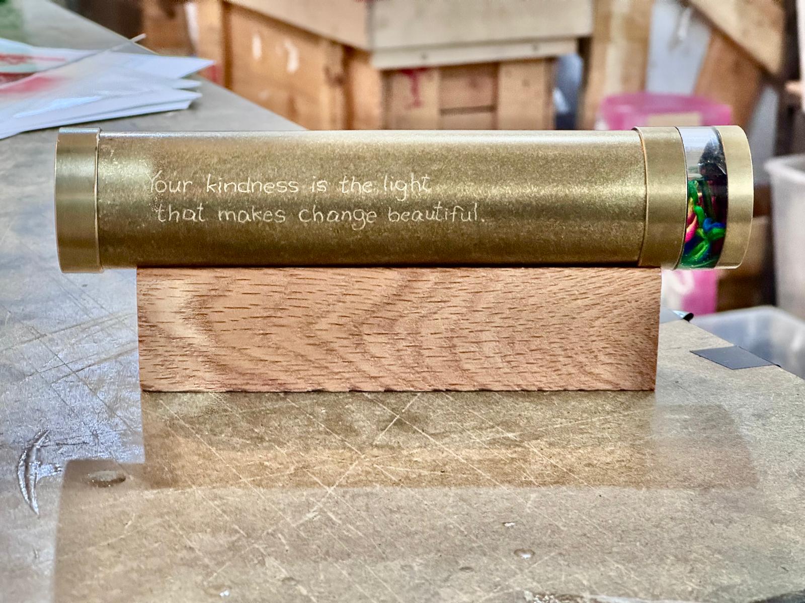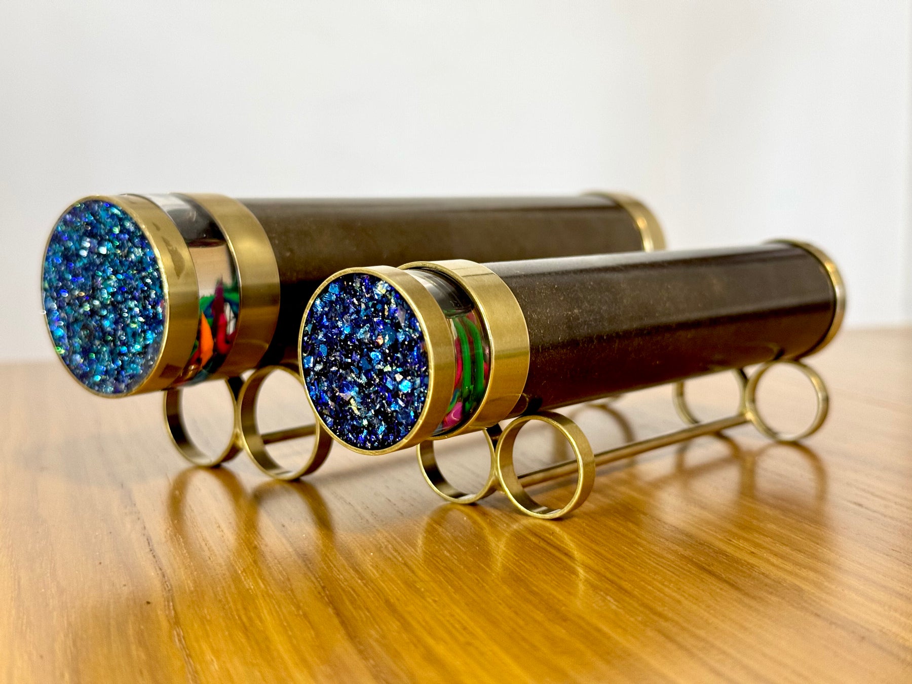 Each kaleidoscope comes to life in Roy's studio, using diverse array of high quality raw materials. All kaleidoscopes are unique, and completely made by hand from beginning to end.